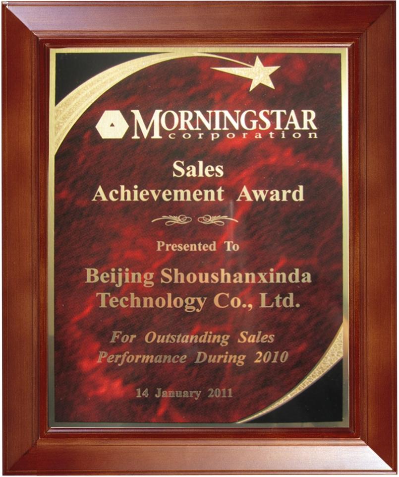 2010年1月,北京中電日晟光伏科技有限公司獲得MorningStar公司的“年度銷售之星”榮譽稱號,同時獲得星級獎牌。